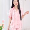 Bộ pijama lụacao cấp dáng suông tay ngắn quần màu hồng xinh xắn H1282