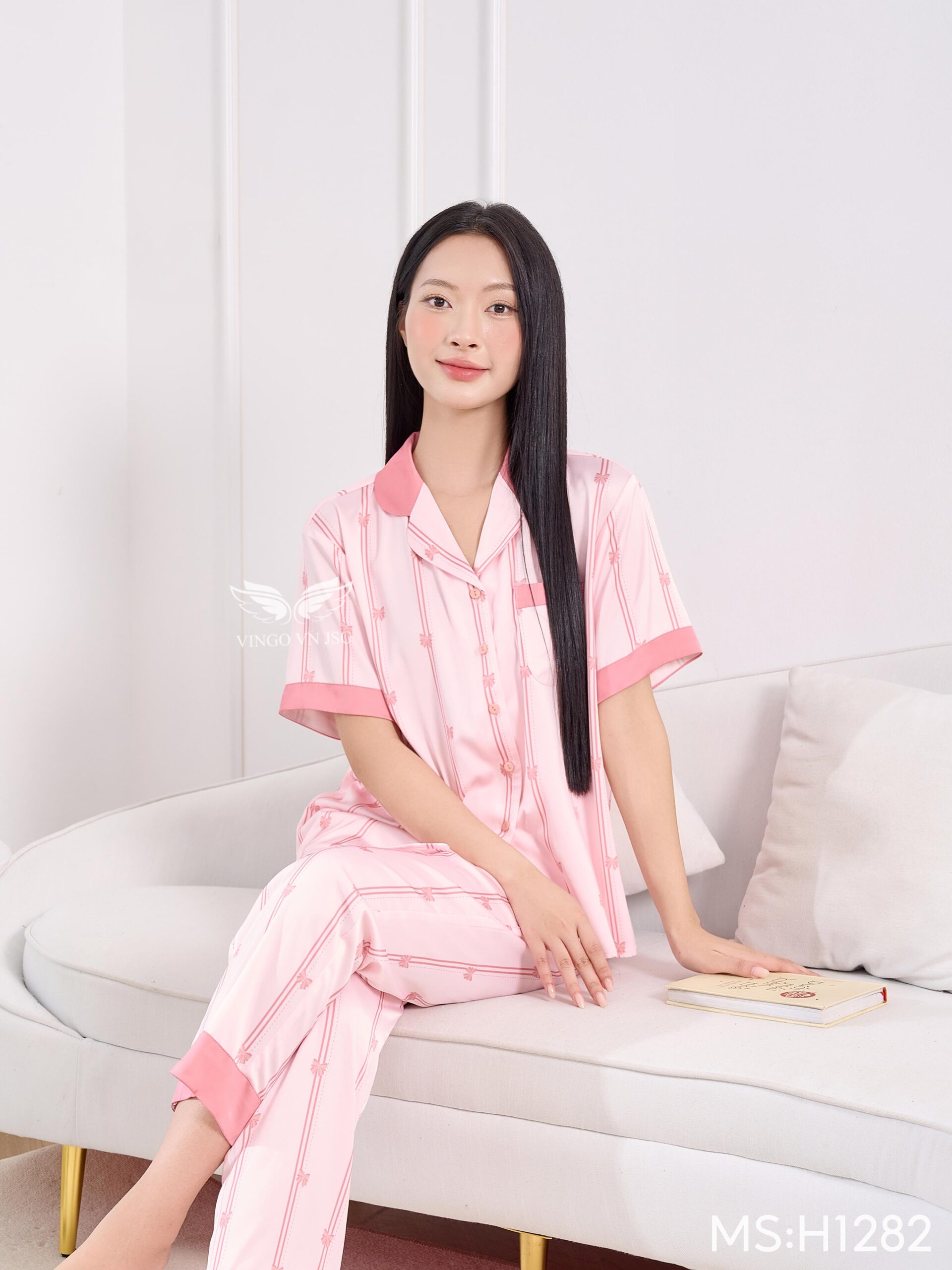 – Set pijama lụa H1289 từ Vingo có thiết kế tay dài dáng có chiết eo nhẹ giúp vóc dáng thon gọn hơn.