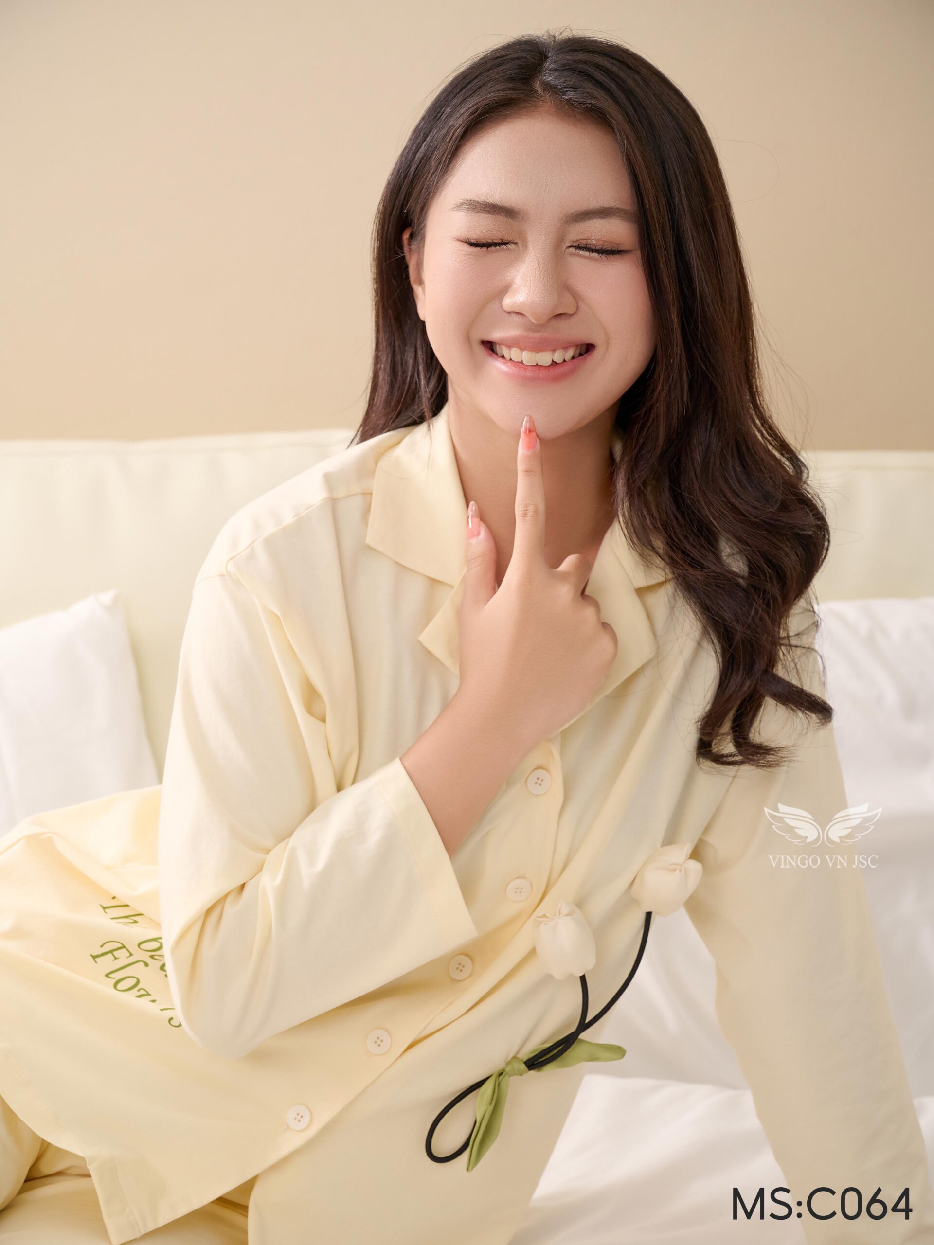 - Tên sản phẩm:Đồ bộ mặc nhà cotton tay dài quần dài đính hoa tulip nổi xinh xắn C064